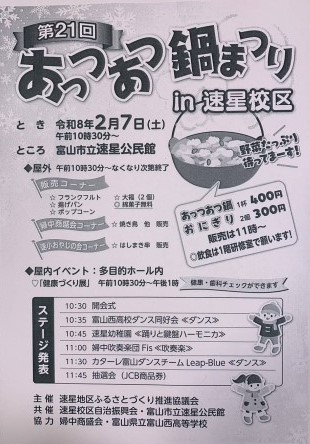 「第21回 あっつあつ鍋まつり in 速星地区」で演奏します!